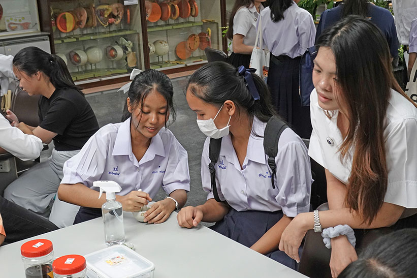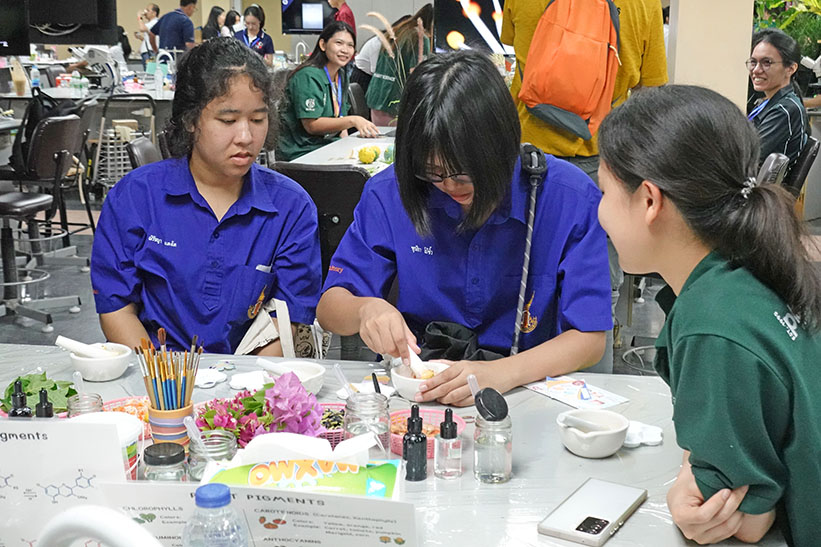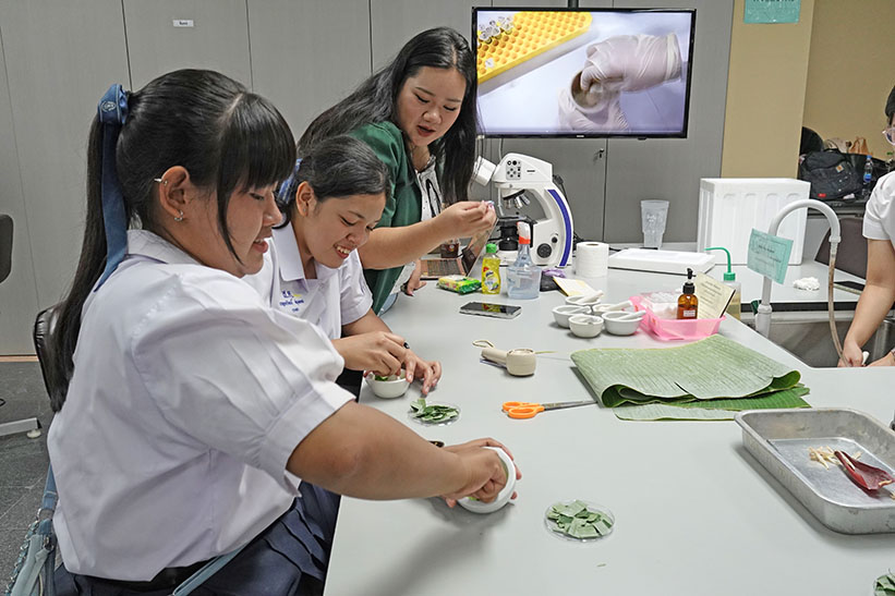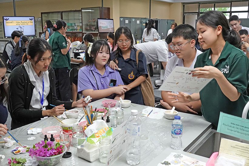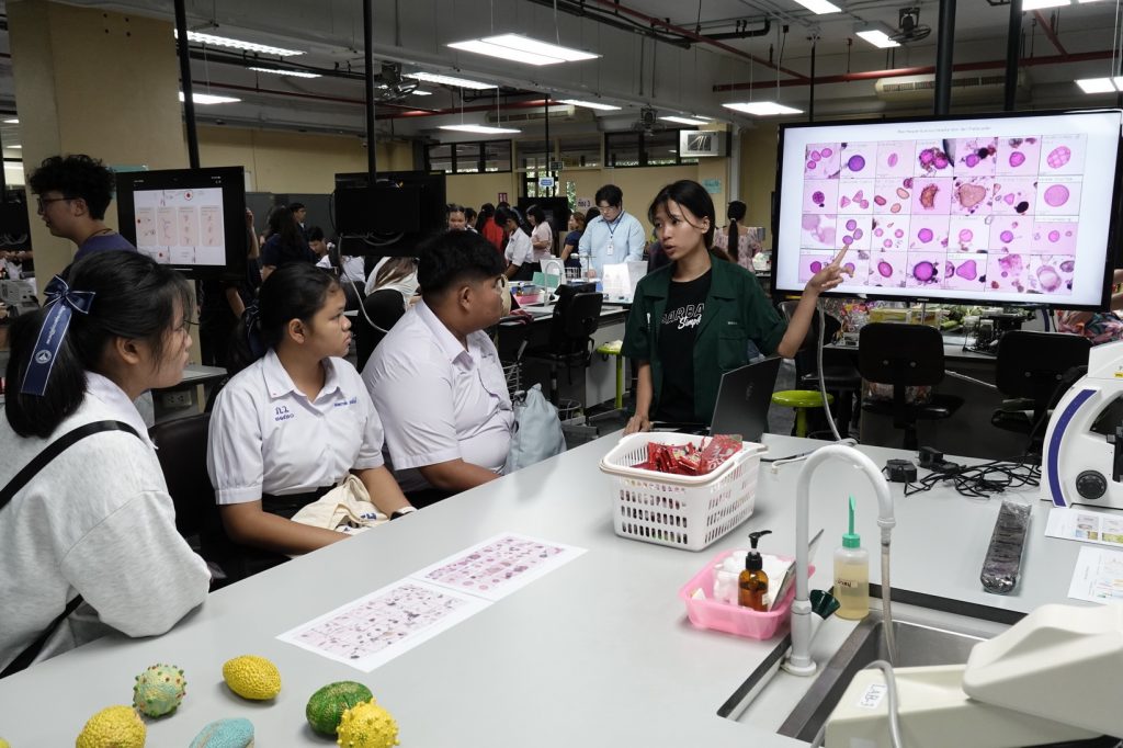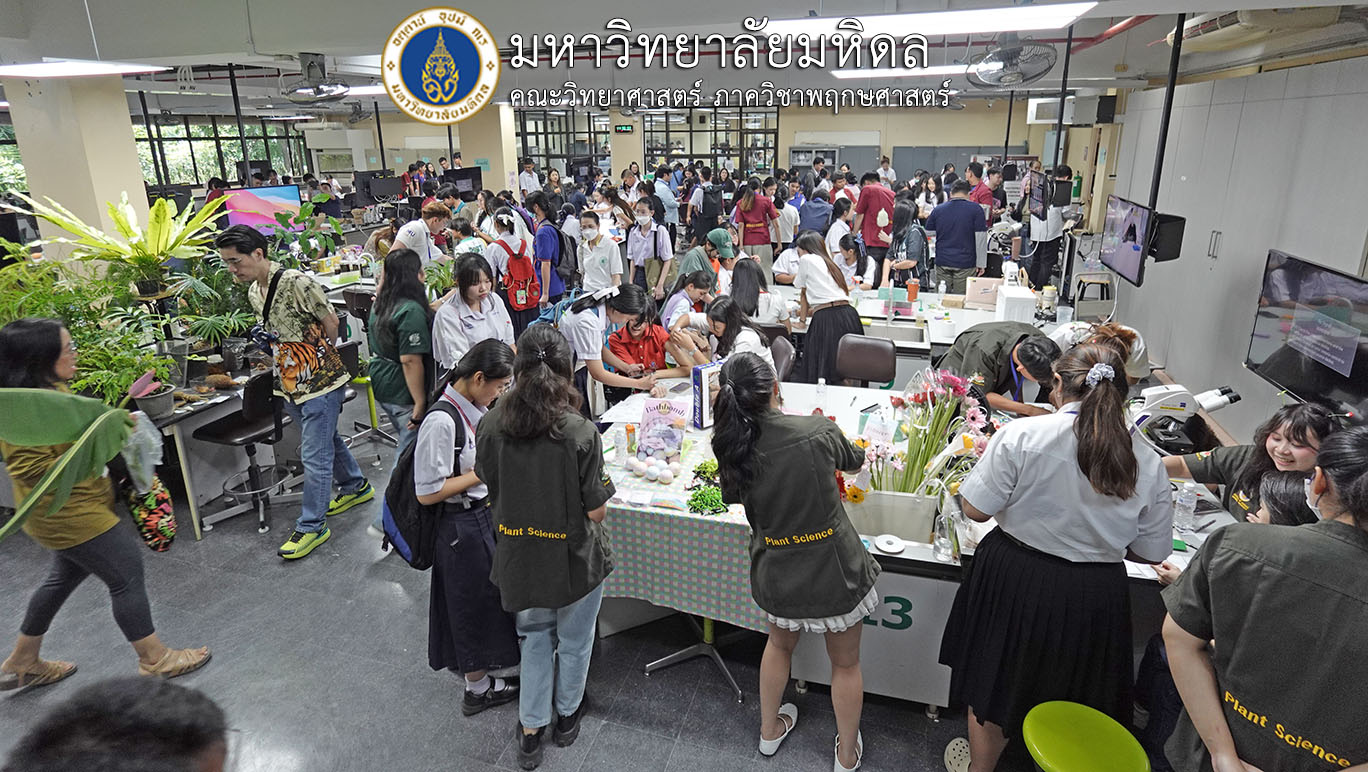 บรรยากาศงานนิทรรศการมหิดลวิชาการ 2568 ที่ผ่านมาไม่นาน หรือที่บางคนจะคุ้นเคยกันในชื่อว่างาน Open House 2025 ที่ในปีนี้กำหนดให้จัดในวันเสาร์และวันอาทิตย์ที่ 6-7 กันยายน 2568 ณ คณะวิทยาศาสตร์(ศาลายา) มหาวิทยาลัยมหิดล ในส่วนของภาควิชาพฤกษศาสตร์ได้จัดนิทรรศการที่อาคาร SC3 ชั้น 3 ห้อง 308 โดยจัดแบ่งเป็นโซนของงานวิจัยต่างๆของภาควิชาฯ ได้แก่ อนุกรมวิธานพืช กายวิภาคศาสตร์พืช สรีรวิทยาพืช สีย้อมผมที่ผลิตจากพืช เซลล์วิทยา การเพาะเลี้ยงเนื้อเยื่อพืช แล็บทดสอบความเป็นพิษ เป็นต้น ด้วยความร่วมมือกันของคณาจารย์และนักศึกษาชั้นปีที่ 2, 3 และ 4 ที่ช่วยอธิบายให้ความรู้แก่นักเรียน ผู้ปกครองนักเรียน และผู้สนใจ ที่มาเยี่ยมชมอย่างมาก ทำให้นิทรรศการนี้สำเร็จได้ด้วยดี