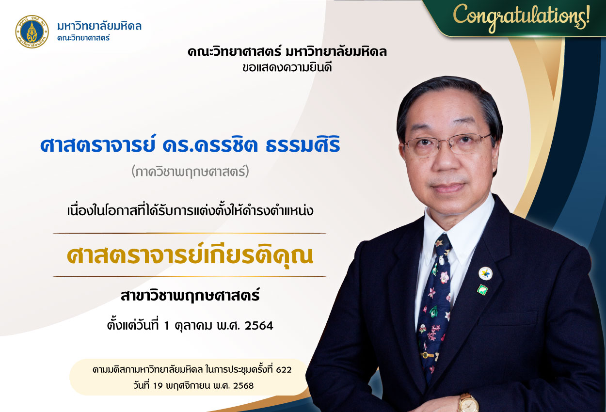 ได้รับการแต่งตั้งให้ดำรงตำแหน่ง “ศาสตราจารย์เกียรติคุณ” สาขาวิชาพฤกษศาสตร์